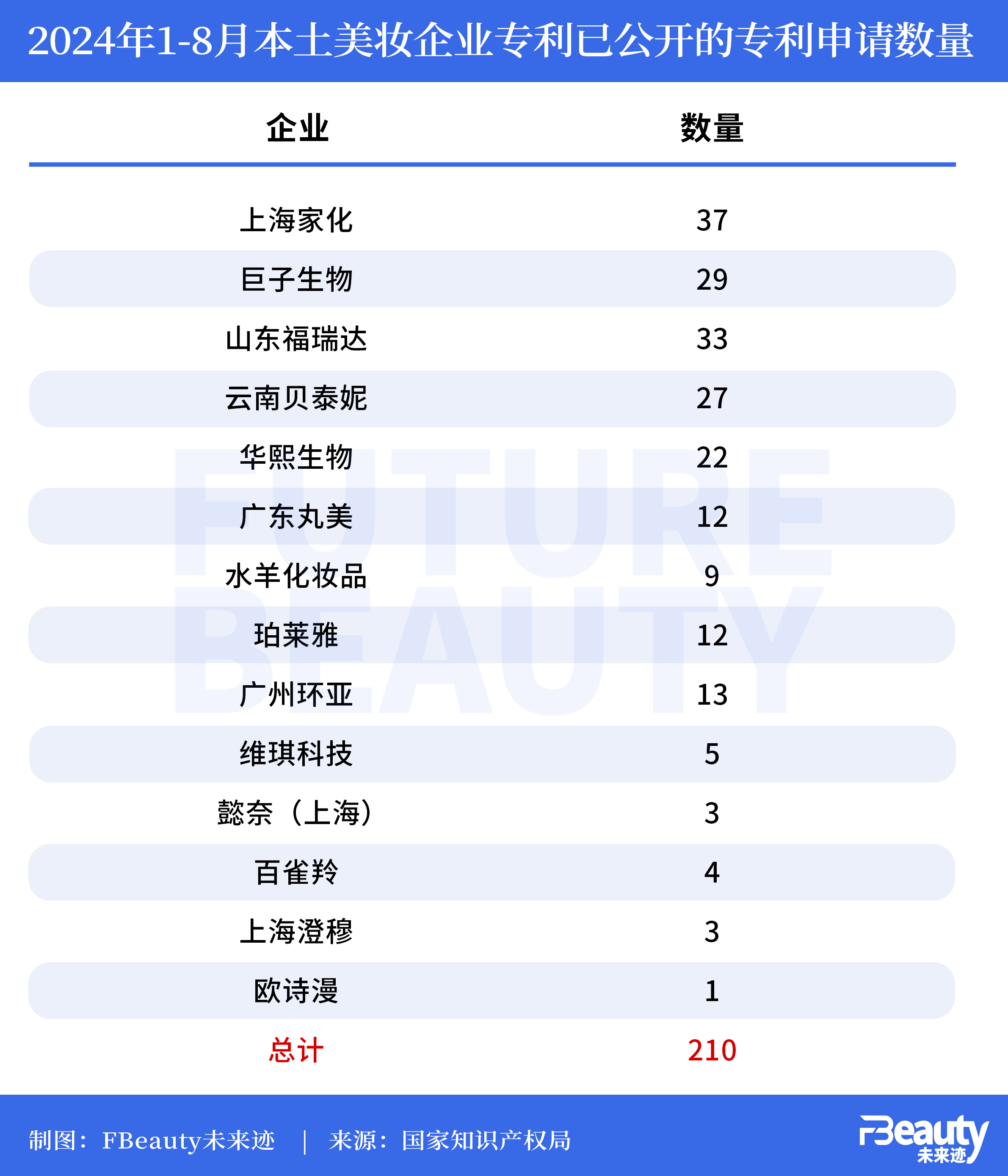 从上海家化、巨子生物等12家本土企业今年1-8月已公布专利申请情况,可以看到以下三点重要变化: