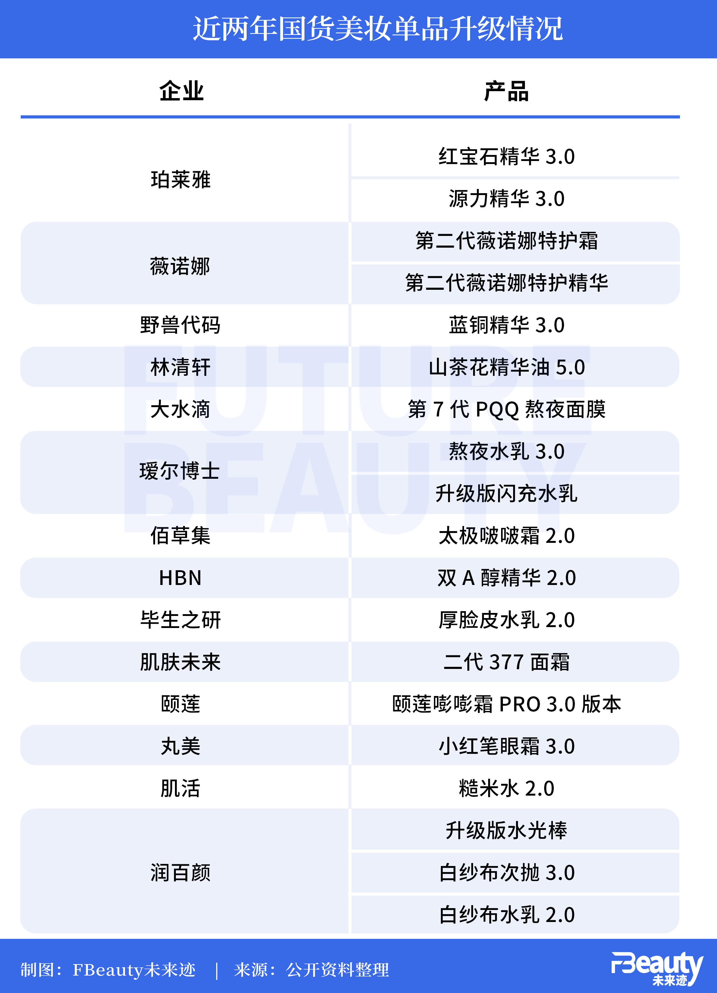从近两年国货美妆大单品升级情况可见,伴随研发端的深入和成果落地,多数产品已经进入2.0或3.0阶段。而这些大单品的功效进阶也反向带动品牌科研走向体系化。