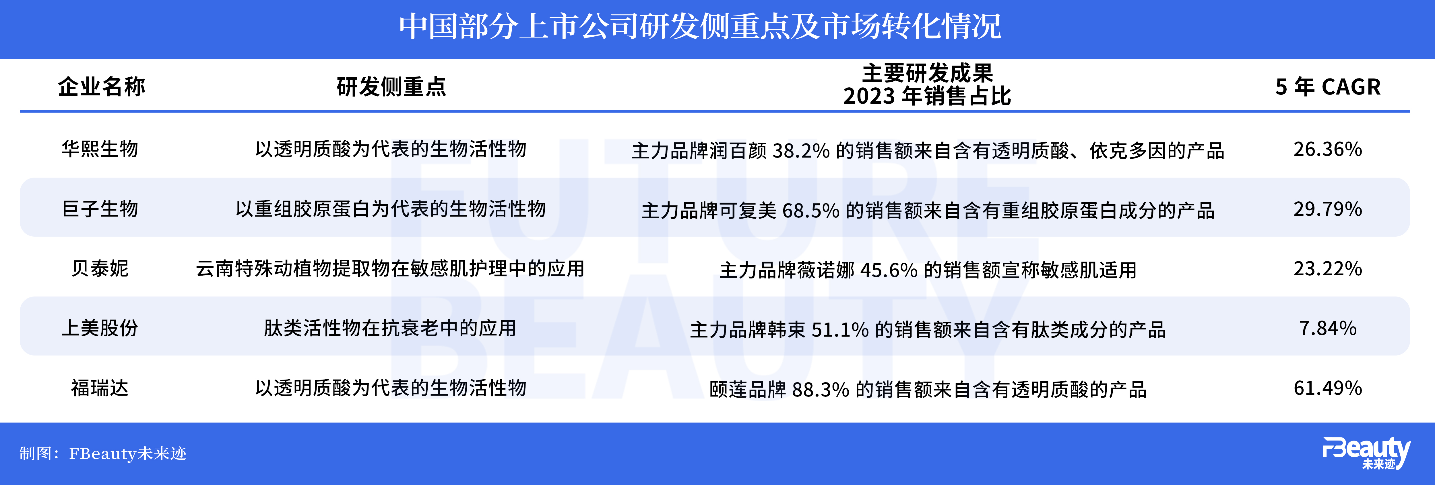 例如珀莱雅组建全球化研发战略,深度整合全球人才、原料、研发和生产等资源;环亚搭建“开放”式创新平台,利用中国和澳大利亚研发中心汇集了中药学、生物科学等诸多学科的专业人才;上美在全链路自主科研体系之上搭建开放式创新平台,整合产学研医等多维度社会性资源,协同推动创新。