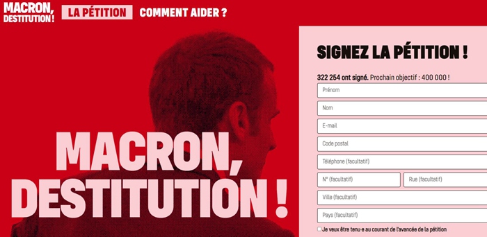 对马克龙不满的法国人也在网上发起请愿,指责马克龙无视民主选举结果,要求议员们把马克龙弹劾下台。该请愿目前已经收集了32万多个签名。