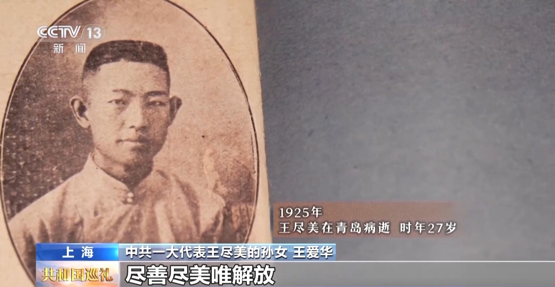 中共一大代表王尽美的孙女 王爱华:我的爷爷王尽美参加了中国共产党一大、二大会议,他就怀着激动的心情写了一首诗,“尽善尽美唯解放”,所以将名字就改成了王尽美。