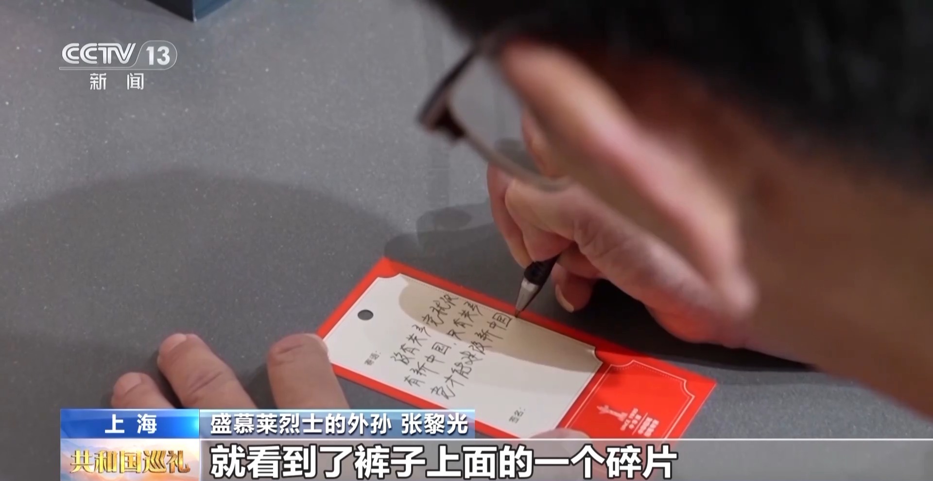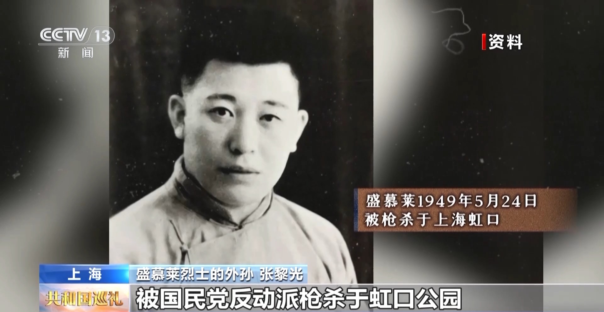 盛慕莱烈士的外孙 张黎光:我的外公在上海解放前三天,被国民党反动派枪杀于虹口公园,就看到了裤子上面的一个碎片,这样才认定了是我的外公。