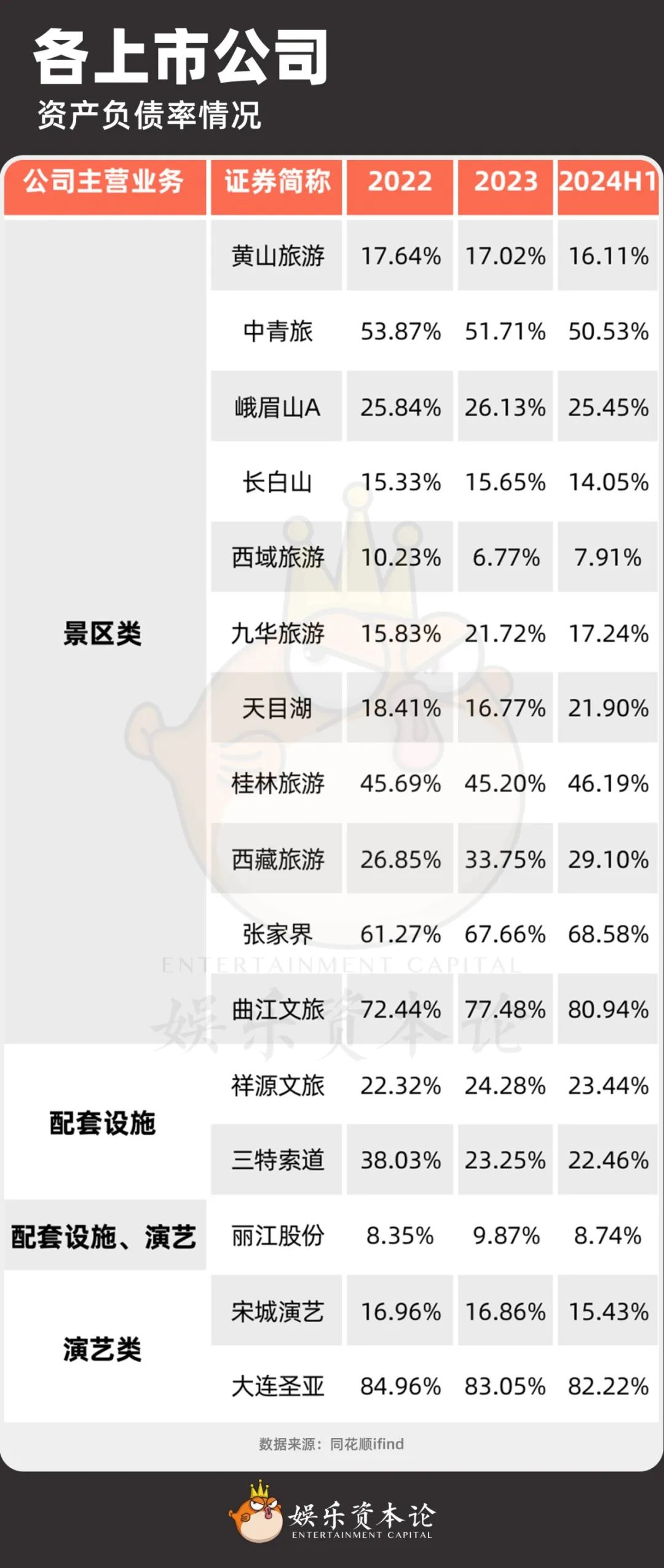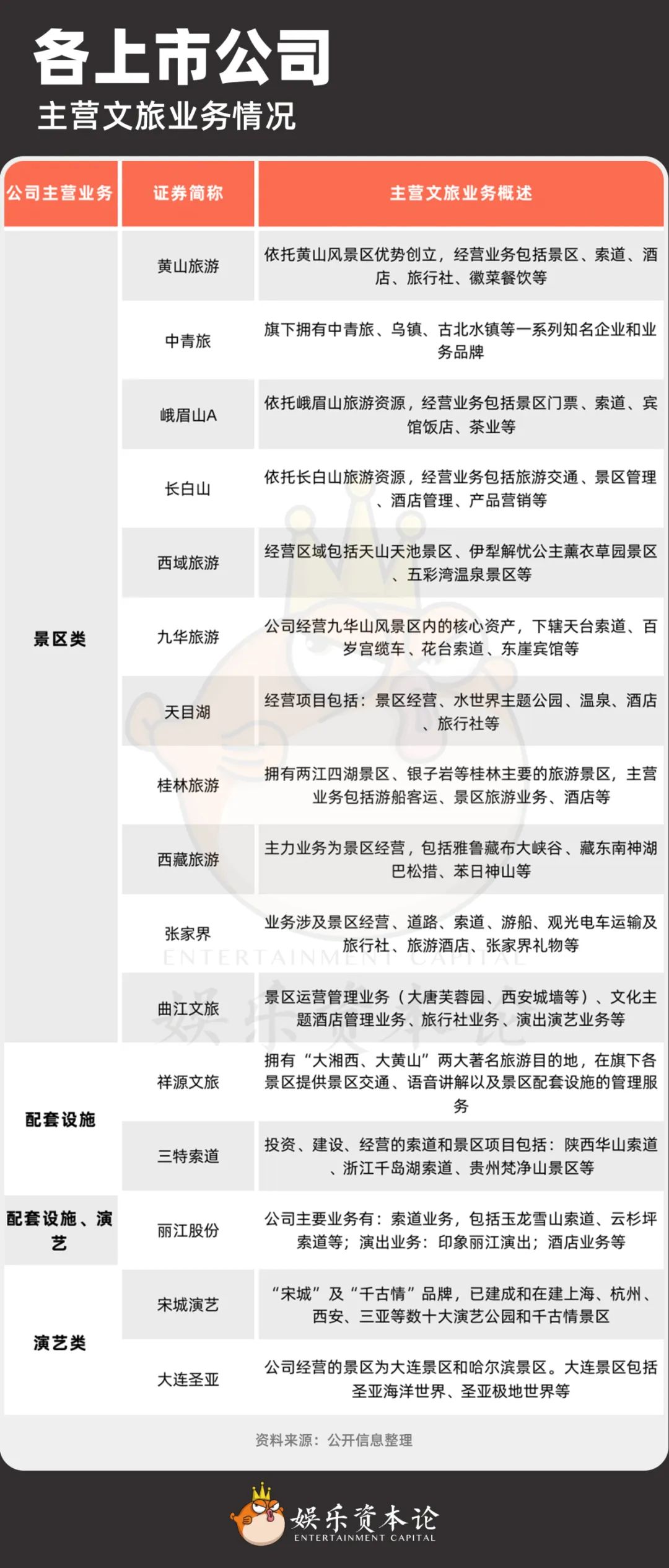 注:由于商业模式不同,我们仅考虑了围绕景点展开的景区经营、景区配套设施(如索道等)及演艺类的具有代表性的上市公司,不包含主营业务为交通、酒店等的其他企业。