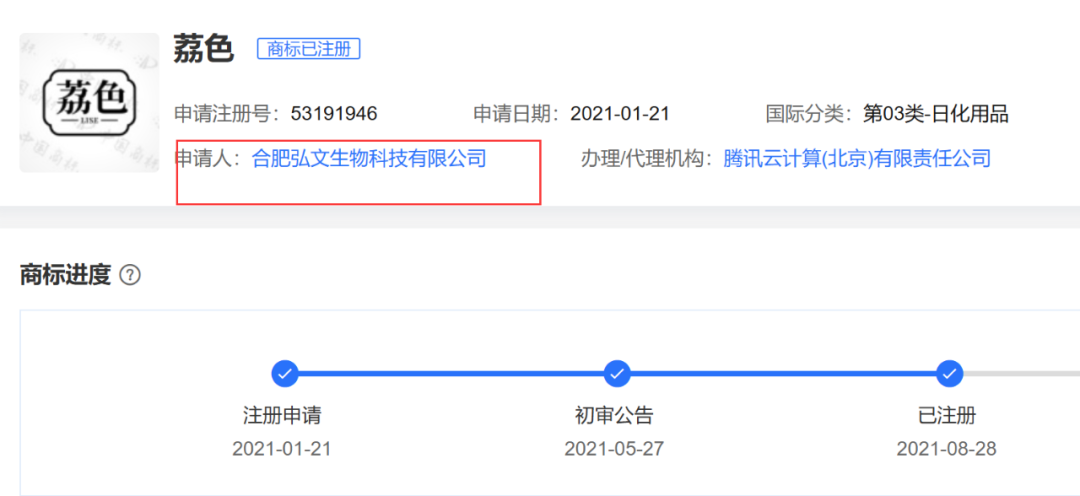 C2CC传媒X新妆注意到,荔色为彩妆品牌,商标申请人为合肥弘文生物科技有限公司。也就是说,荔色和娇润泉同属一个公司。这也意味着,三只羊将在成功打造娇润泉的基础上,开始涉足彩妆赛道,从而扩大其美妆市场的生意版图。
