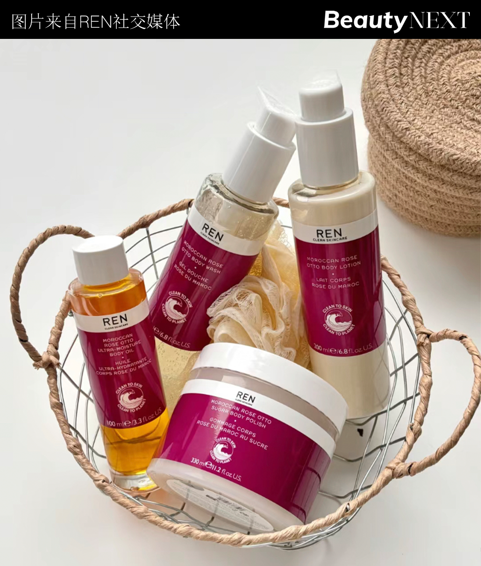 REN在中国市场有一个有趣的现象。一位消费者向BeautyNEXT分享:“我是从某个大主播那知道REN这个品牌的,因为直播间只卖品牌的摩洛哥奥图玫瑰洗护套组,导致我一直以为REN是一个身体护理品牌,后来才知道它原来是做护肤起家的。”