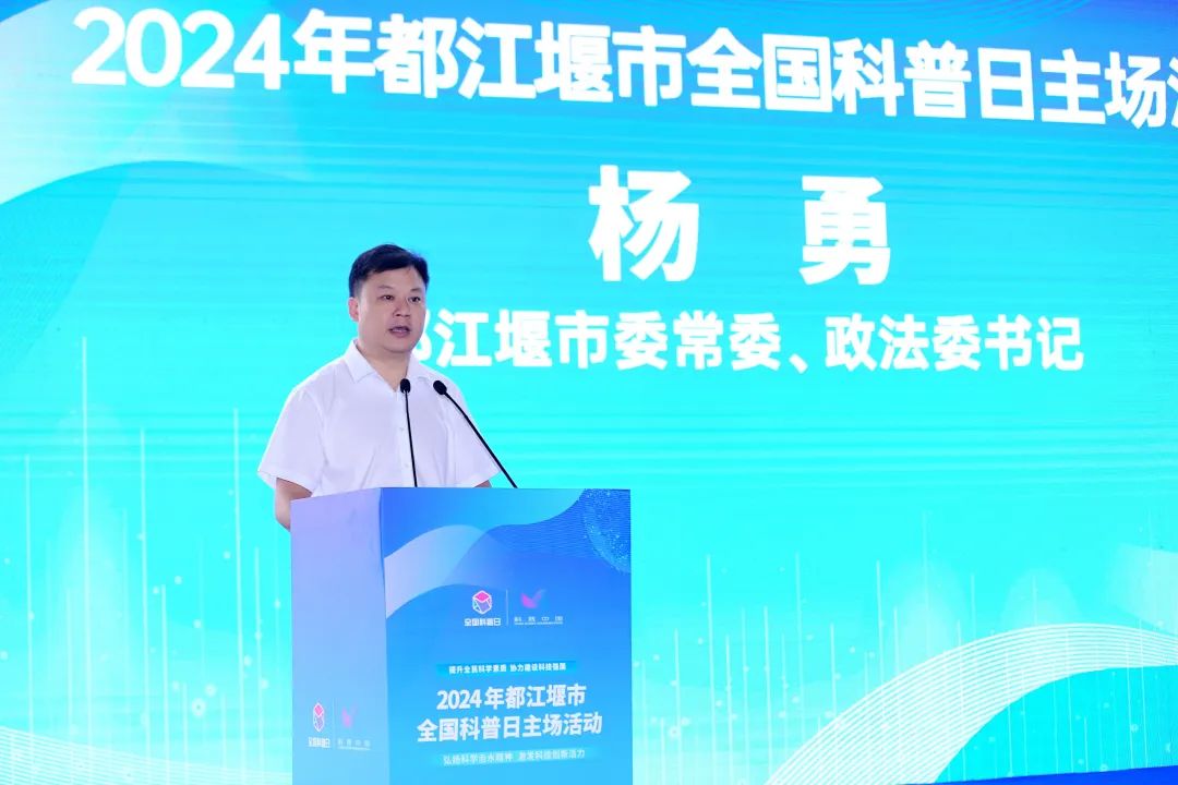 市委常委、政法委书记杨勇在致辞中向各条战线上的科技工作者和关心支持都江堰市科技与科普事业发展的社会各界人士表示衷心的感谢。他说,都江堰市将大力弘扬李冰治水精神和科学创新精神,推动科普工作融入经济社会发展各领域各环节,加快形成分工明确、资源共享、优势互补的协同推进机制,持续搭建科普资源普惠共享平台,加强科普内容、形式、渠道等创新融合,推动优质科普资源下沉基层,营造热爱科学、崇尚创新的社会氛围。