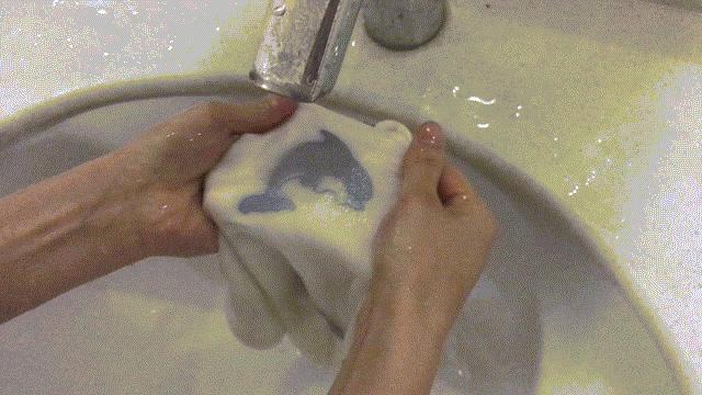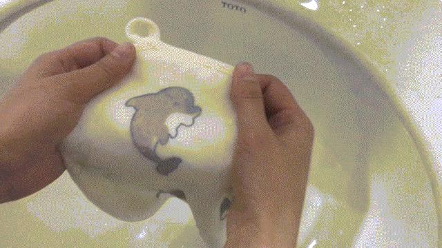 首先是沾染污渍变色。我们先在毛巾感应区泼了些自来水,将其打湿,但发现感应海豚没有变色,说明感应区并不会因为湿度变化而变色。