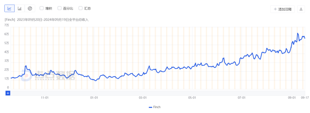 最近一年,Finch在全球的下载量呈现波动微涨状态,收入情况增长则相对更明显一些。