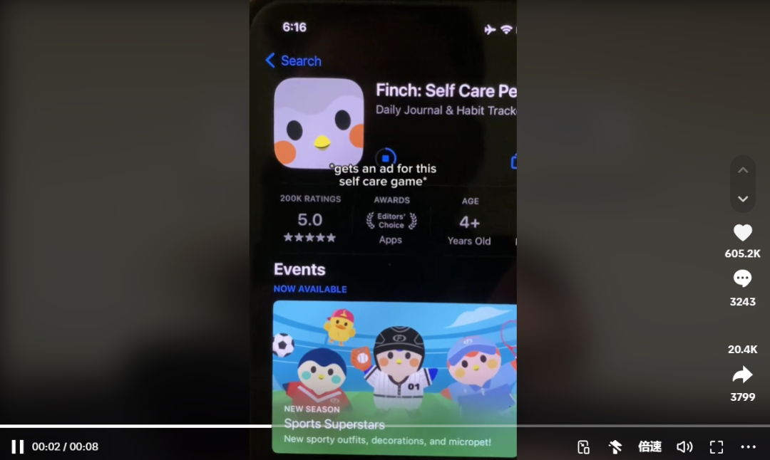 上线3年,情绪管理应用Finch在ins上积累了23万粉丝,单月下载量超55万,刚刚过去的8月,Finch月流水超100万美元。