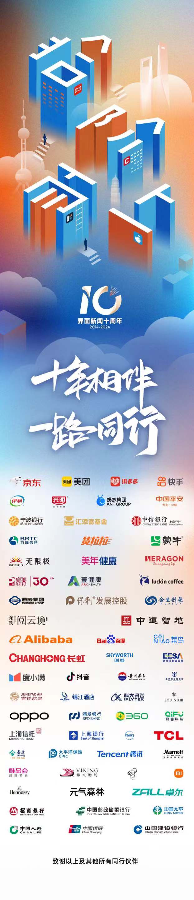 界面财联社始终聚焦中国经济发展,致力于成为中国头部财经平台及领先的金融信息服务机构。十年发展,感谢业内众多知名企业及品牌的大力支持。展望未来,让我们继续携手同行,为中国经济发展贡献更大价值。