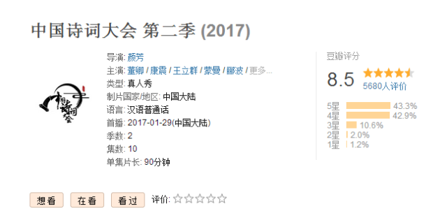 这是素来苛刻的豆瓣用户给《见字如面》、《中国诗词大会》、《朗读者》打出的分数。在国产综艺口碑普遍维持在6分的豆瓣网,这样的成绩显得鹤立鸡群。