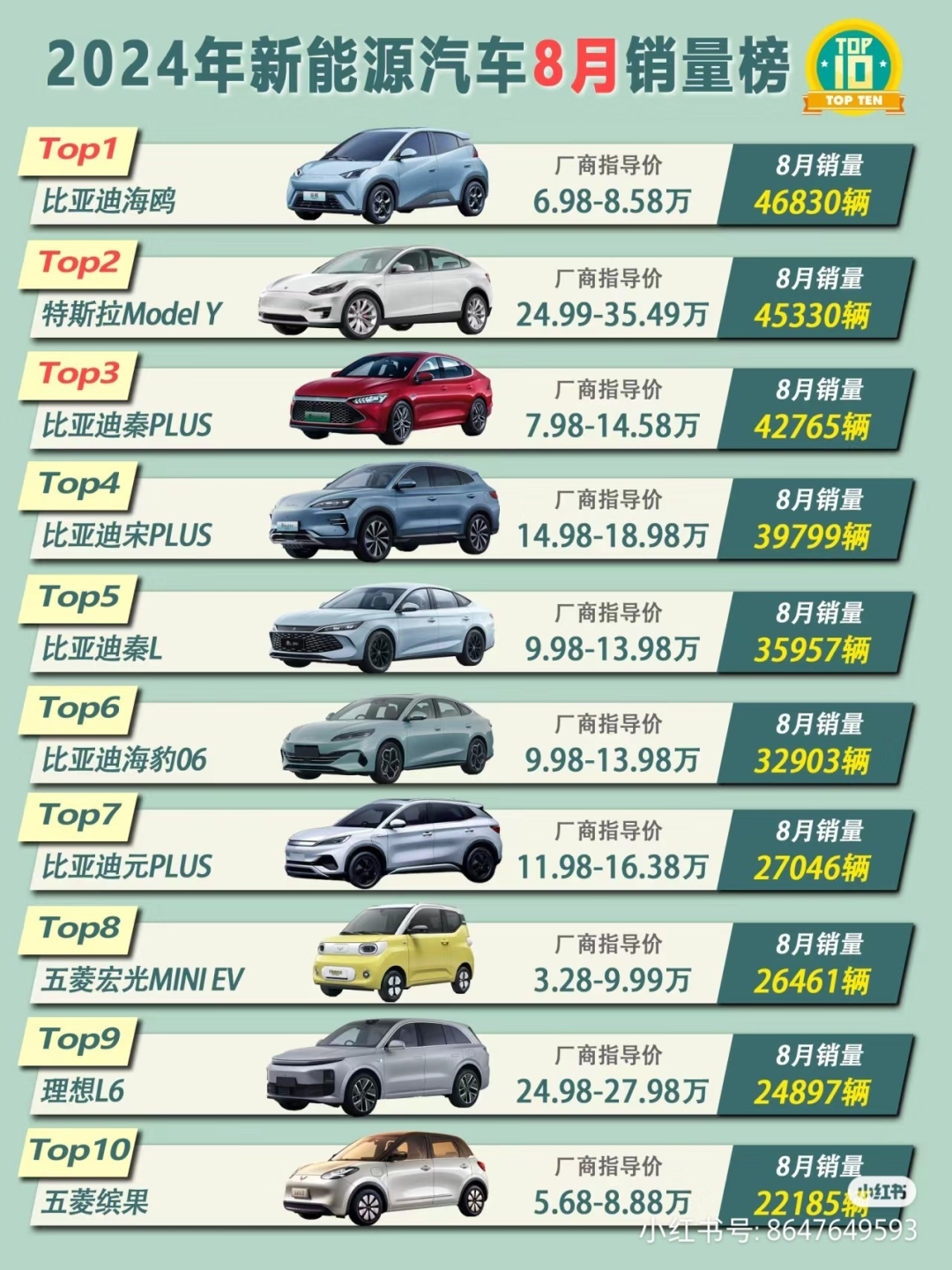 根据8月份新能源汽车销量榜前十显示,除了比亚迪海鸥、理想L6等上市少部分车型,基本上都是老系列新改款车型,其中销量榜第三的秦plus,其系列车型最早可以追溯到2012年。当时比亚迪收购了日本狄原模具,升级了第二代DM混动技术,拥有现代外观和出色燃油经济性的比亚迪秦横空出世,到现在虽然外观修修修补补,DM技术从第二代升级到了第五代,但依然稳坐钓鱼台,成为名副其实的国民神车。