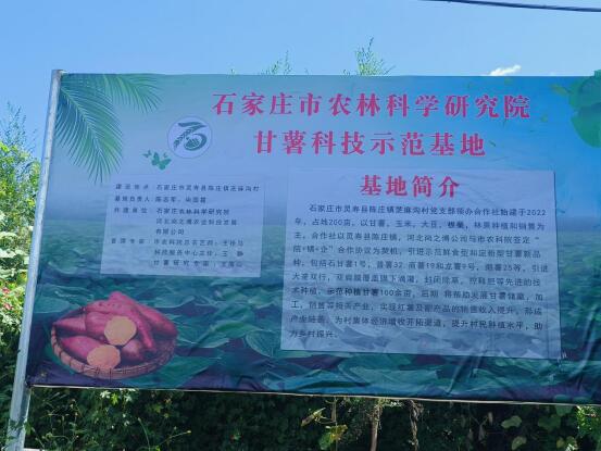 基地简介:石家庄市灵寿县陈庄镇芝麻沟村党支部领办合作社始建于2022年 ,占地200亩,以甘薯,玉米,大豆,板栗,林果种植和销售为 主。合作社以灵寿县陈庄镇、河北尚之博公司与市农科院签定“院+镇+企”合作协议为契机,引进示范鲜食型和淀粉型甘薯新品种,包括石甘薯1号,普薯32.商薯19和龙薯9号,烟薯25等,引进大垄双行,双肩膜覆盖膜下滴灌,封闭除草,控释肥等先进的技术种植,示范种植甘薯100余亩,后期将帮助发展甘薯储藏,加工,销售等相关产业,实现红薯及副产品的销售收入提升,形成产业链条,为村集体经济增收开拓渠道,提升村民种植水平,助力乡村振兴。