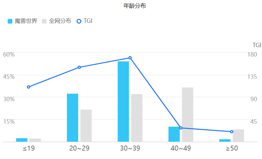 根据百度指数显示,对“黑神话悟空”感兴趣的用户中,20-39岁用户占比超过70%,而对“魔兽世界”感兴趣的用户中,20-39岁用户占比超过85%。