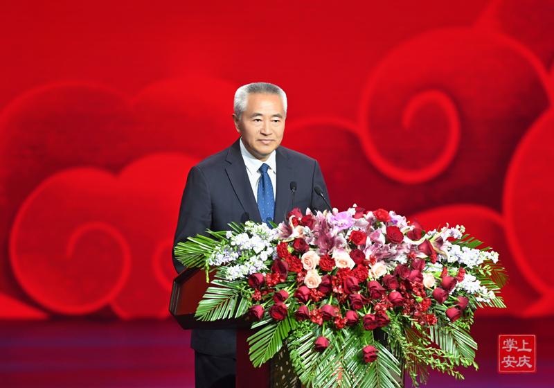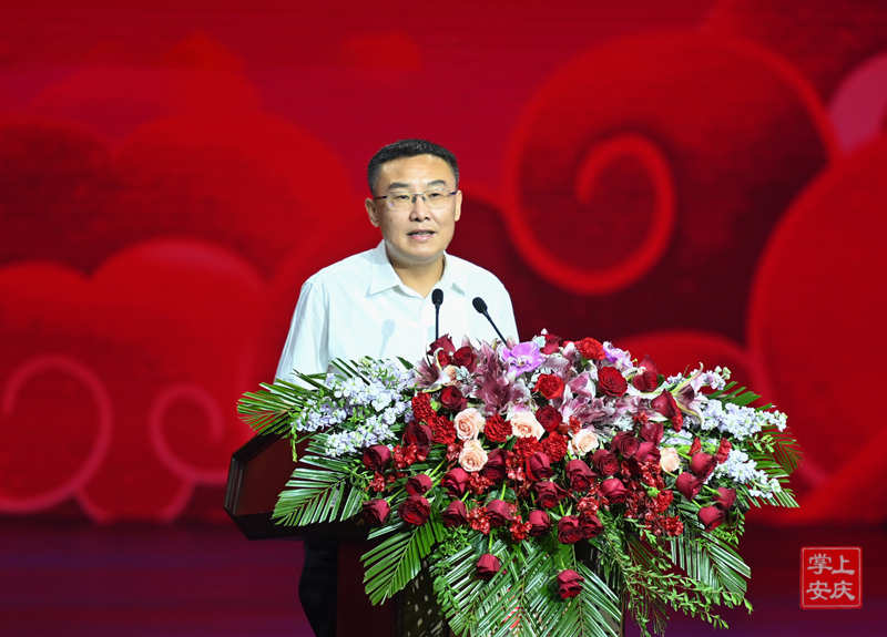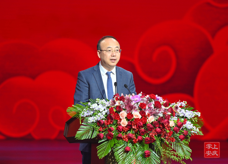 张祥安在开幕式上致辞。他代表市四套班子和530万安庆人民,向莅临艺术节的领导和嘉宾表示热烈欢迎和衷心感谢。他说,安庆是“京黄故里、戏曲之乡”,“一座黄梅城,满城戏中人;一曲黄梅调,谁人不知是安庆”“最有戏的城市、唱着过的市民”是新时代安庆的最美点赞。当前,安庆正处于转型发展、蓄势突破的关键阶段。我们将深入学习贯彻党的二十届三中全会精神,全面落实省委十一届七次全会部署,坚持以改革思维推动黄梅戏传统发展,大力实施黄梅戏曲本典藏工程、四季有戏展演百千万工程、新时代走出去工程,推动戏曲进校园、戏曲名家走基层,让“安庆有戏”更加“好戏连台”,奋力打造具有高辨识度的安徽文化名片和文化地标。