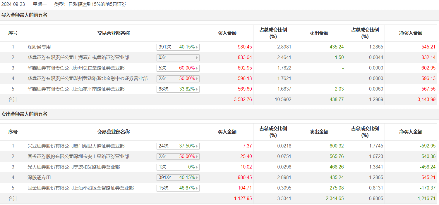 具体来看,知名游资现身龙虎榜,炒股养家(华鑫证券有限责任公司上海宛平南路证券营业部)净买入567.56万元。此外,深股通专用、华鑫证券上海嘉定棋盘路证券营业部分别买入980.45万元、833.64万元;兴业证券厦门湖里大道证券营业部、国投证券深圳宝安上星路证券营业部分别卖出600.32万元、565.76万元。