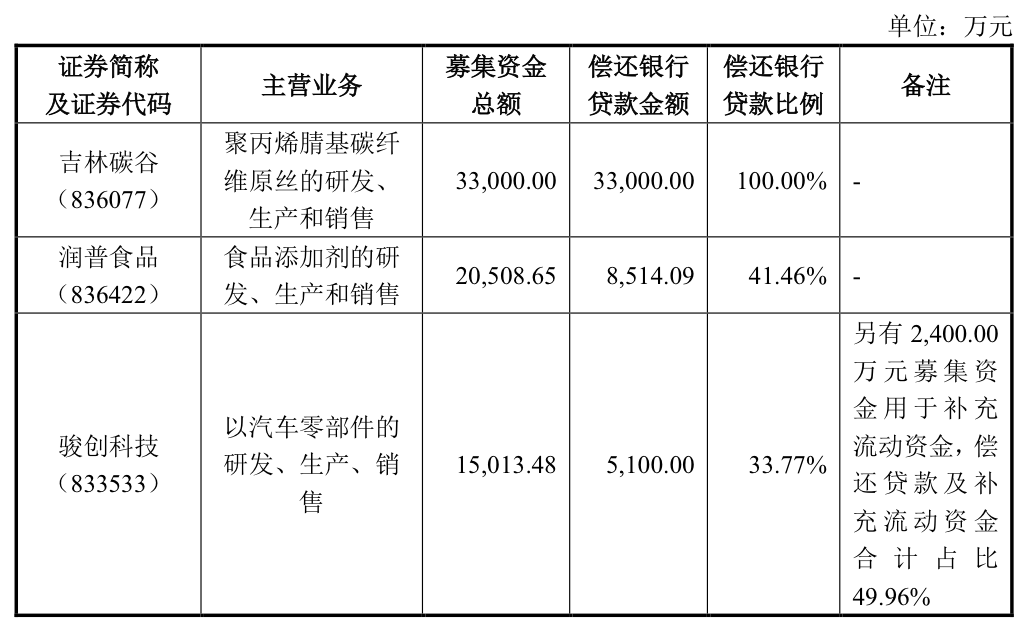 不过,非同行业企业的吉林碳谷(836077.BJ)为北交所上市公司,也是全额募资还款。