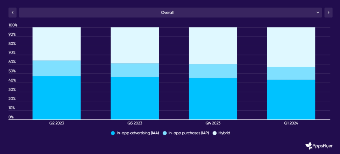 中核游戏也因多种原因向混合模式转变。过去两年半内,IAP的增长停滞不前,促使开发者多元化收入来源。此外,广告形式的改进减少了它们的侵扰性,并且更容易被玩家接受,不再对留存率构成重大影响。
