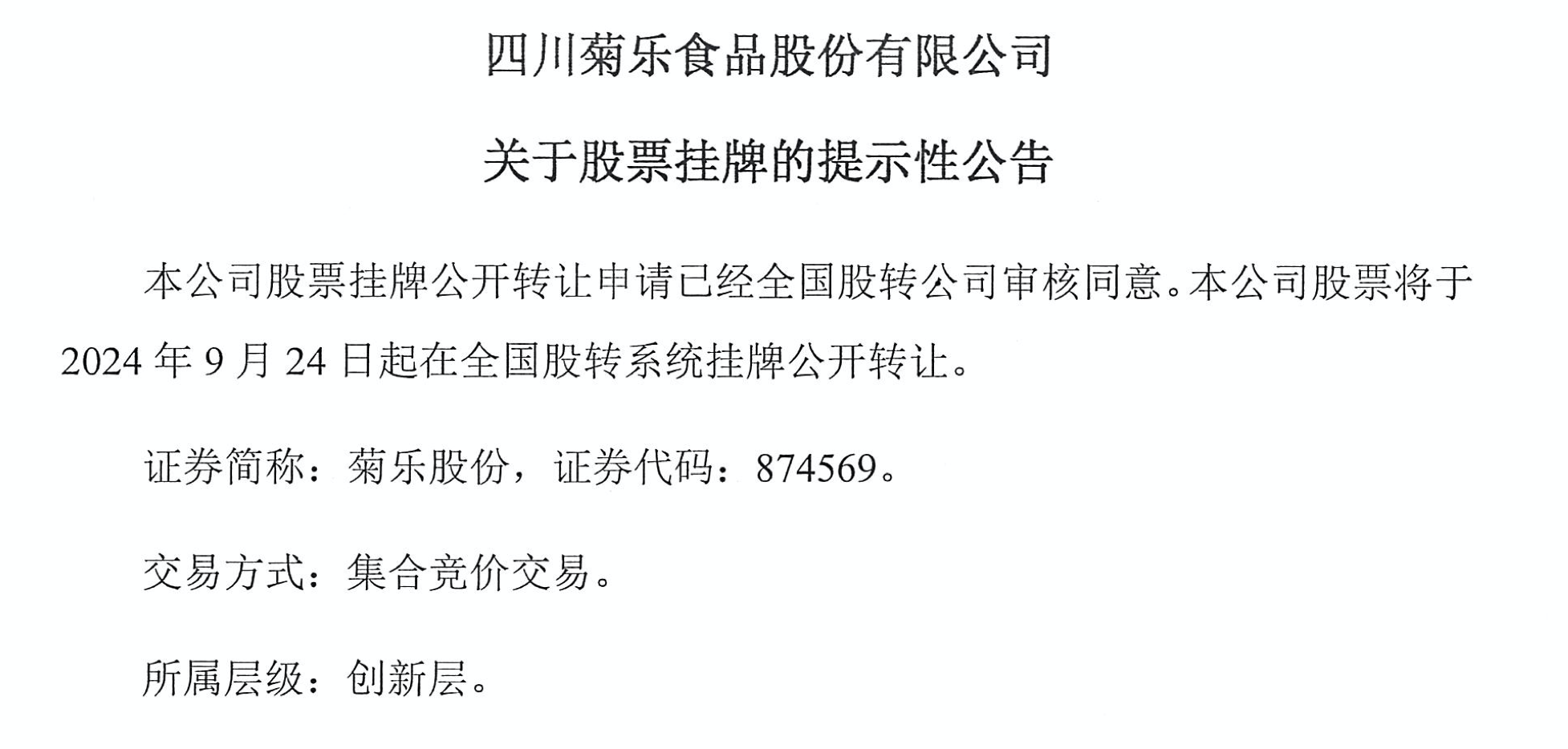 值得注意的是,登陆北交所是有前提条件的,即“发行人在全国股转系统连续挂牌满12个月的创新层挂牌公司,可以申请公开发行并在北京证券交易所上市”。菊乐股份为冲北交所,也在新三板完成了挂牌,不过挂牌时间从2024年9月24日算起,目前所属层级为创新层。看起来,菊乐股份要成功登陆北交所,至少还需一年时间。