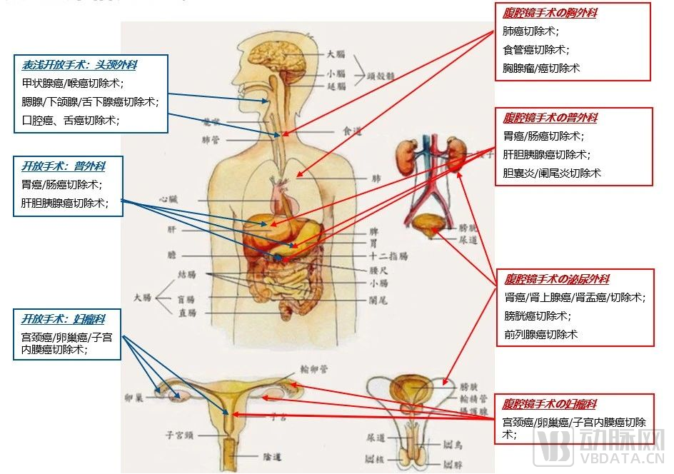 在应用场景端,超声刀已经覆盖整形外科、妇科、泌尿科、胸外科、肝胆外科,以及胃肠外科、头颈外科、耳鼻喉外科、小儿外科等十几个科室,囊括了子宫肌瘤手术、腹主动脉瘤修复术、直肠肿瘤切除手术、阑尾手术、痔疮切除术、肾上腺切除术等几十种外科手术。