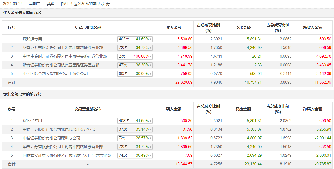 具体来看,知名游资现身龙虎榜,深股通专用、炒股养家(华鑫证券上海宛平南路证券营业部)分别买入6500.80万元、4899.50万元;深股通专用、中信证券北京总部证券营业部分别卖出5891.31万元、5303.87万元。