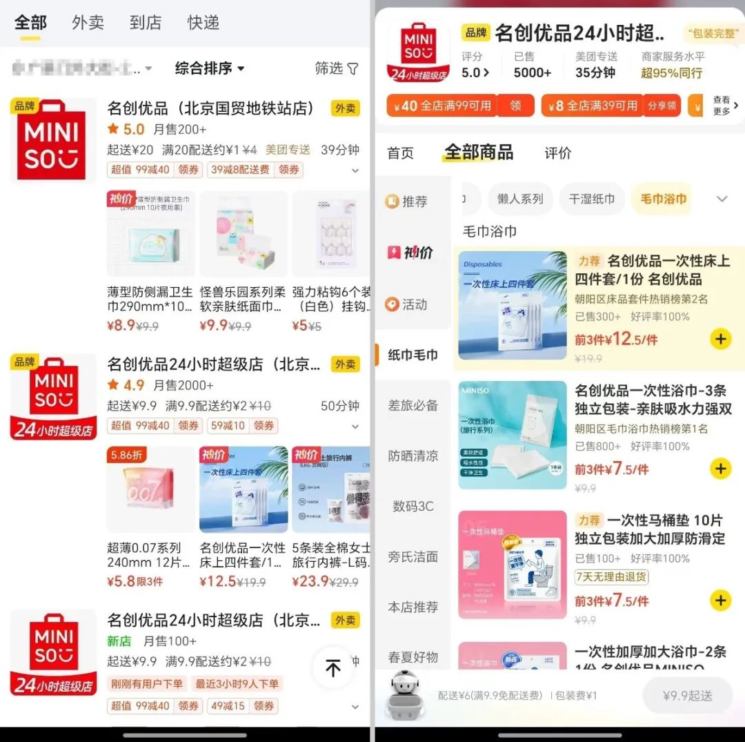 在美团平台上,名创优品的超级店已经上线,部分地区最低消费9.9元就可以实现24小时下单并免费配送。这是在TOP TOY之后,名创优品在业务上做出的全新尝试。