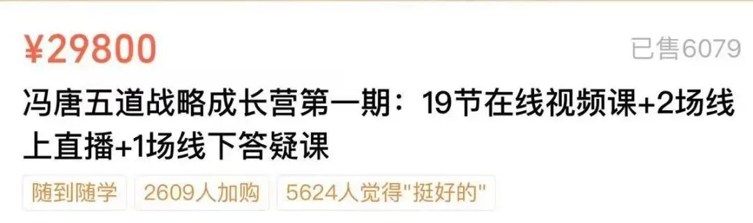 要说知识付费这个事情,在李一舟的AI课程变成了史诗级笑话之后,多少有一点名声不佳。但这当中也有一些区别。冯唐卖的这个课程是商业咨询课,等于就是自己专业范围内的东西。而且咨询业是结果很难量化评估的行业,不客气地说,买的就是一个心理按摩。知识付费虽然不乏真想要骗钱的人,但是由于买家的心理预期不一样,对课程的“获得感”自然也各不相同。