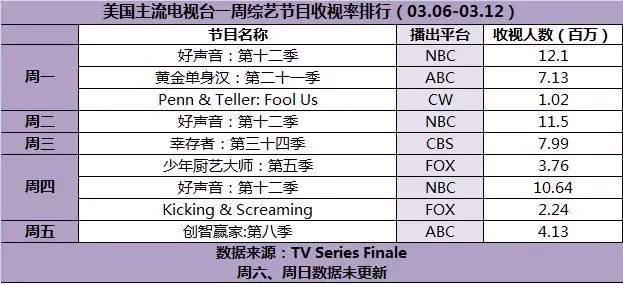 此外,ABC在上周还有一部新剧播出。《People Icons》是一部由ABC News和《人物》(People)联合打造的迷你剧,《早安美国》主持人Lara Spencer会与《人物》的编辑Jess Cagle等人一起探讨登上过《人物》封面的人物对美国文化造成的影响。第一集收视观众为260万。