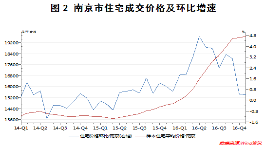 一方面是贯彻落实国家因城施策、分类调控的要求;另一方面,进入2017年以来,南京商品住宅成交环比持续上行(参见图1),且房地产价格进一步上行(参见图2)。