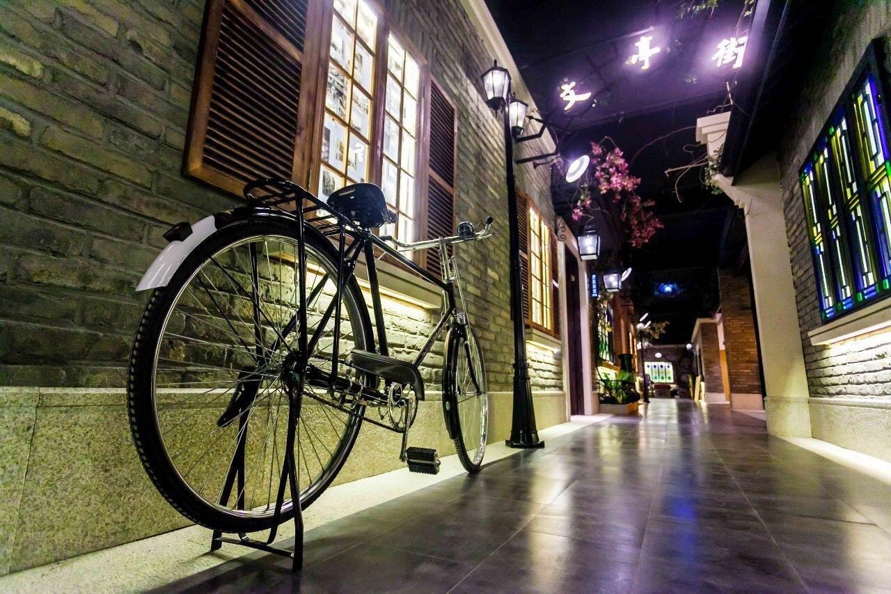 徐州宴的二楼,青砖巷陌,藤蔓鲜花,老式自行车摆放路边,包房里的翠蓝色调显示房间的时尚和厚重。餐厅的每一个碗碟,每一个座椅,每一张画,似乎都能让人触摸到民国的气息。