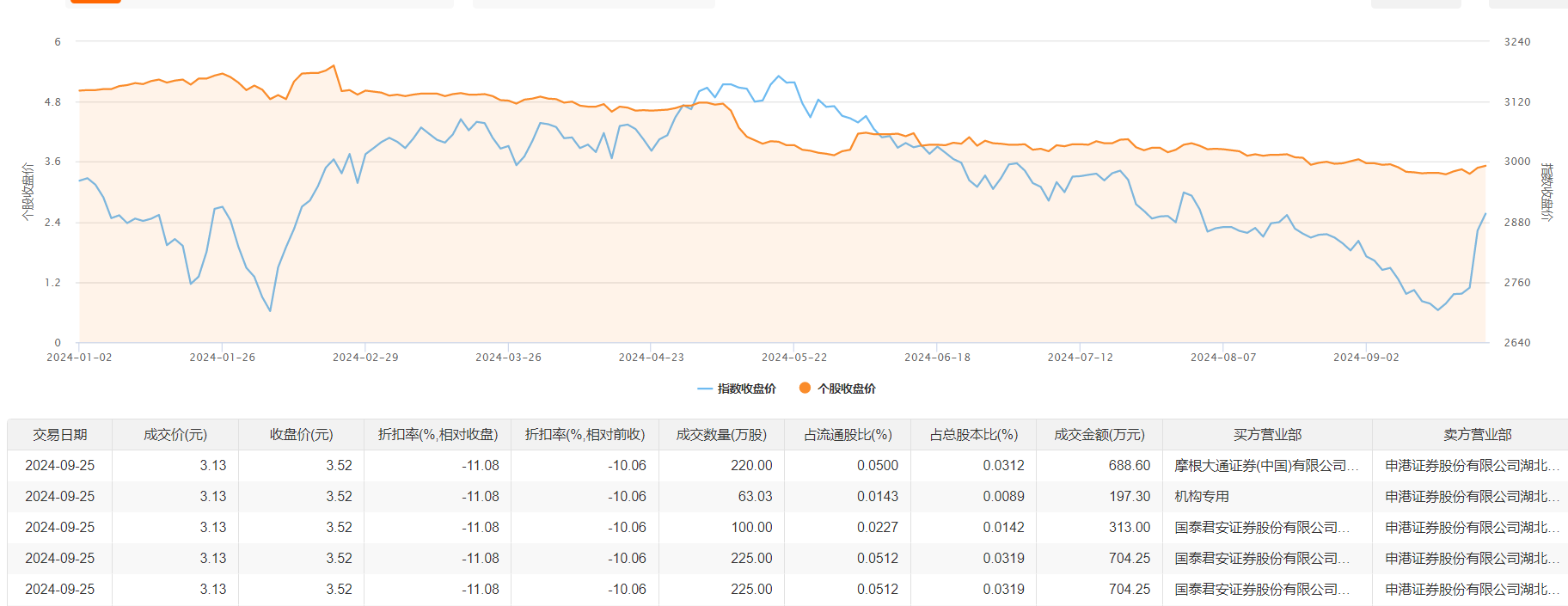 芯联集成-U9月25日大宗交易成交833.03万股,成交额2607.4万元,占当日总成交额的11.5%,成交价3.13元,较市场收盘价3.52元折价11.08%。
