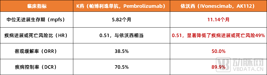 先是在产品端。9月9日,康方生物在“2024世界肺癌大会”上公布了自主研发的全球首创PD-1/VEGF双特异性抗体新药依沃西单药与帕博利珠单抗单药(即“K药”)的头对头三期临床数据:依沃西单药在中位无进展生存期(mPFS)、风险比(HR)、客观缓解率(ORR)和疾病控制率(DCR)上均大幅胜出。值得一提的是,“K药”是史上最好的抗癌药物之一,同时也是当前全球销售额最高的“药王”,依沃西此次能够“单挑”成功,意义重大。
