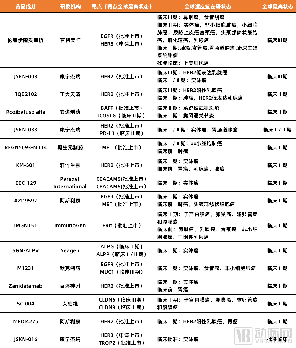 图3. 全球进入临床阶段的 16 款双抗 ADC (数据来源:Insight,数据截至2024年5月底)