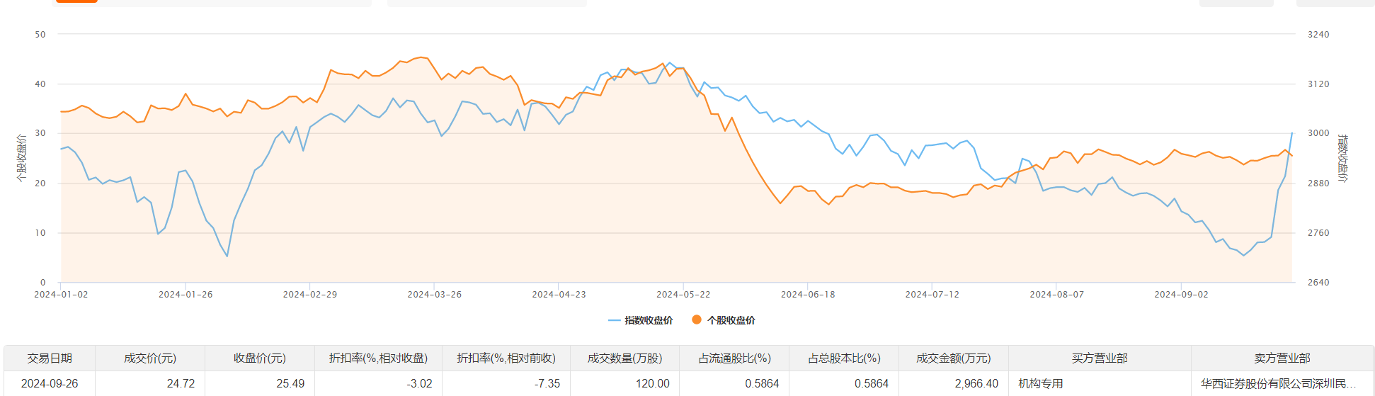 松炀资源今日大宗交易折价成交120万股,成交额2966.4万元