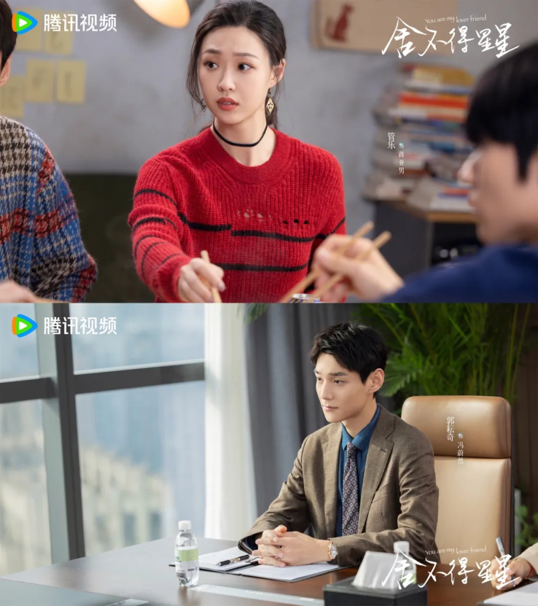 除了两位主角,其他角色也充满着千丝万缕的联系。如郭耘奇和管乐饰演的这对夫妻都曾参加过《一年一度喜剧大赛2》,同时郭耘奇在剧里是蒋时延的同学兼合伙人,生活中则是张新成的大学同班同学。此外,《舍不得星星》的第一集还联动了张新成主演的另一部剧《大宋少年志》中的多位好友,开篇就引发一波“七斋”回忆杀。