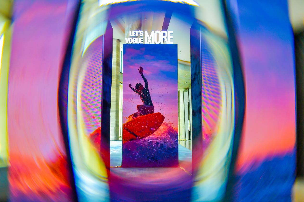 由三块错落排布的LED矩阵组成的「潮流时尚区LET’S VOGUE MORE」正上演极具视觉冲击力的震撼大片,时尚走秀、户外、燃动派对……充分展示了深圳大悦城对时尚潮流的敏锐捕捉、对运动活力的坚持追求以及对娱乐方式的创新引领。整个发布会外场的氛围打造不仅传递了深圳大悦城的多元业态亮点,更是一场视觉与感官的盛宴。
