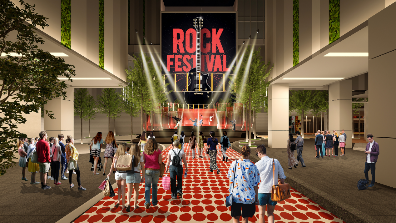 深圳大悦城兼具国际视野和在地文化,携手国际设计团队,溯源宝安“得宝而安”的历史,以钻石切割面为灵感设计项目外立面,内含宝安首个裸眼3D大屏,展现科技与未来感。在商场内部,突破盒子mall局限性,打造了四大自由而富有生命力的创新空间,营造开放和松弛的商业氛围。