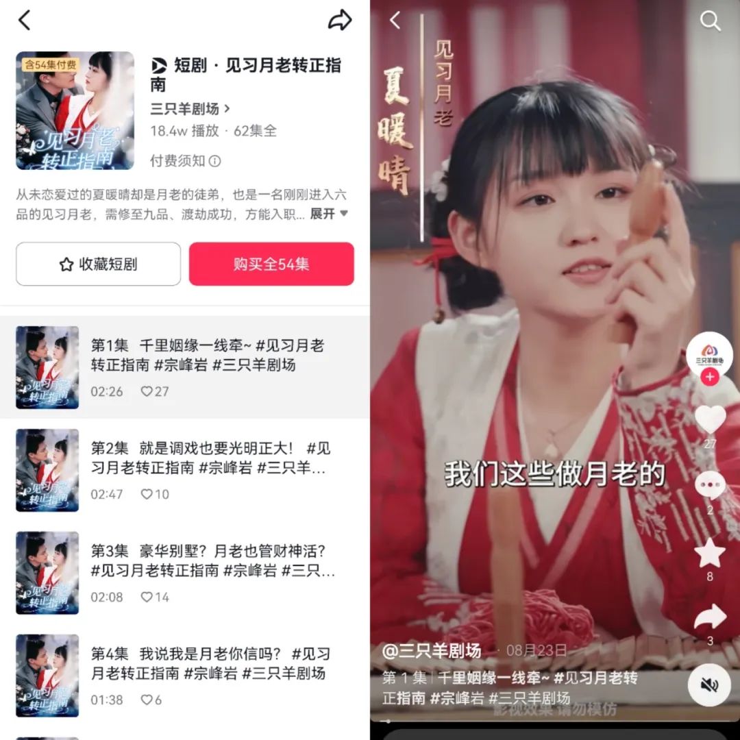在此之前,小杨哥有试过将商业触角伸向更广阔的天地,离得最近的便是影视行业,去年底三只羊成立了合资公司合肥聚百星传媒,推出了《傅爷,你的替嫁新娘是大佬》《见习月老转正指南》等多部短剧,虽首部剧的总播放量超过8000万,但反响平平,甚至没有冲入前20名的榜单。
