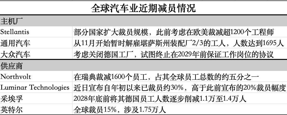 缓慢而迷茫的电动化转型正在让传统跨国汽车公司和供应链承受巨大冲击,自去年以来,多家企业陆续宣布大幅裁员。近期这种裁员潮有进一步升级的趋势,欧美企业成为裁员的“重灾区”。