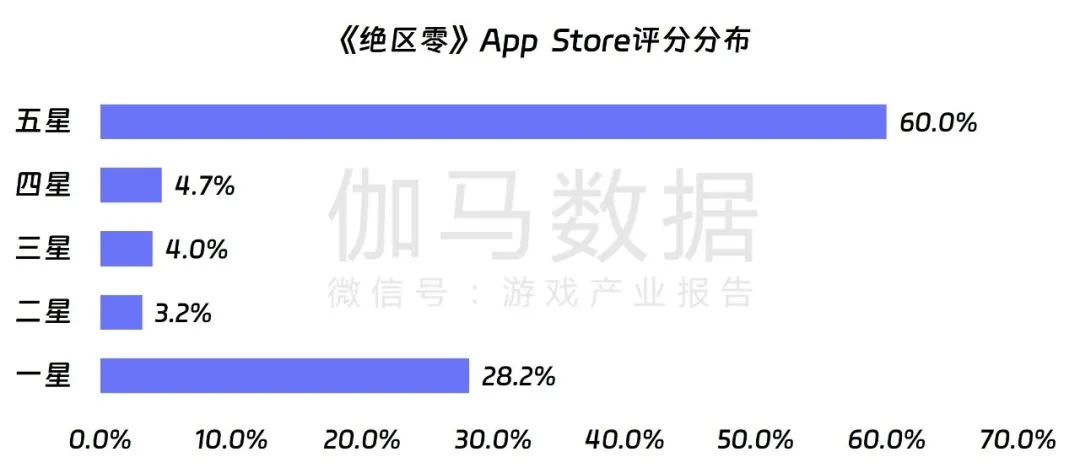 统计日期内,《绝区零》在App Store获得60%五星评论,28.2%一星评论。正面评论中,玩家表示对战斗体验、剧情等方面均较为满意,此外也提出了闪退、黑屏等问题;负面评价中,玩家主要反馈了设备优化问题,另外,部分玩家表示了对“走格子”玩法的负面看法。