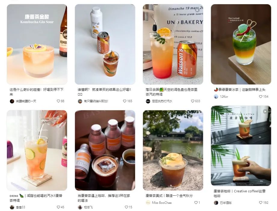 此外,小红书、抖音等内容分享平台的发展,推动了自制调饮、微醺搭配的饮用方式的多元化。康普茶凭借酸酸甜甜又自带气泡感的特性,成为酒饮、咖啡、果汁等品类都能搭配的“万能搭子”。
