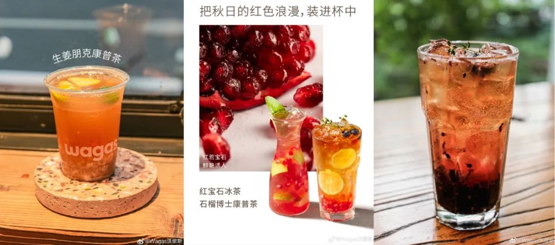 Wagas推出过生姜朋克、石榴博士、莓桑热舞等康普茶