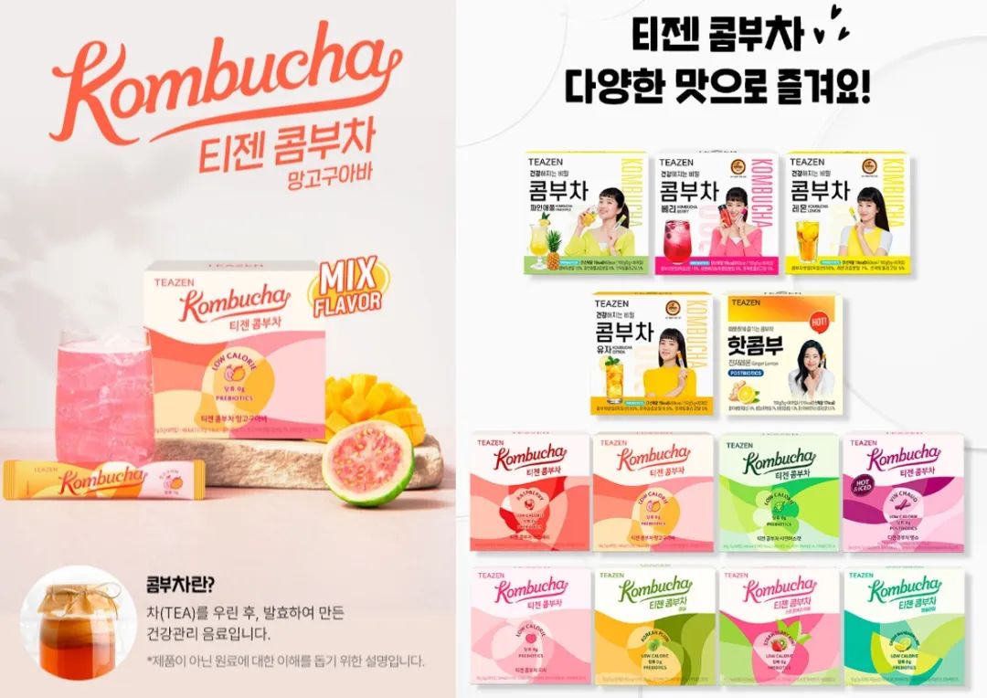 许多爱看韩剧的朋友也许会对一款康普茶粉有很深的印象。韩国知名康普茶品牌Teazen,就把康普茶打造便携速溶、便于冲泡的冻干茶粉形态,扩展了康普茶的饮用场景。