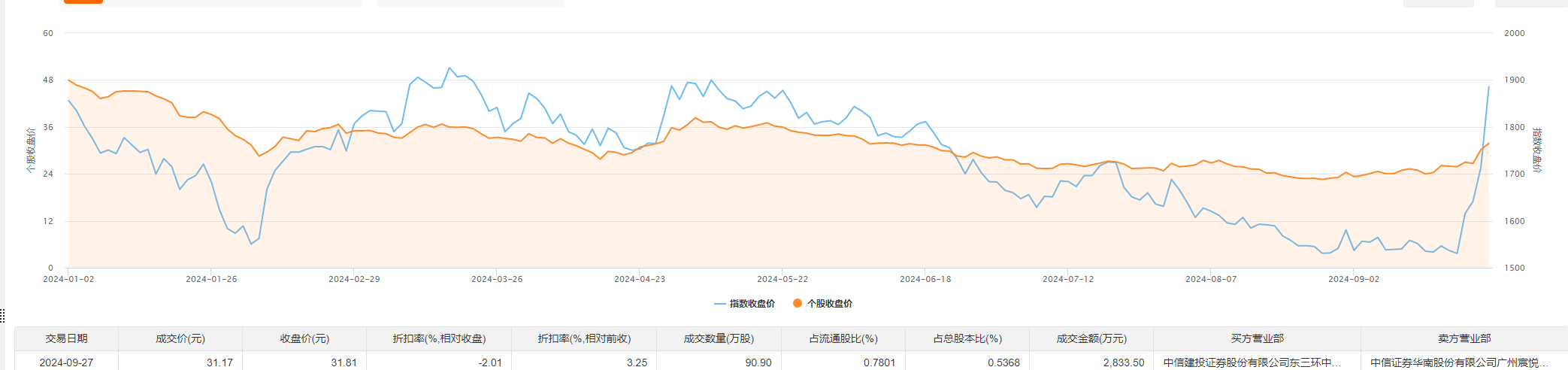 立高食品9月27日大宗交易成交90.9万股,成交额2833.5万元,占当日总成交额的9.12%,成交价31.17元,较市场收盘价31.81元折价2.01%。