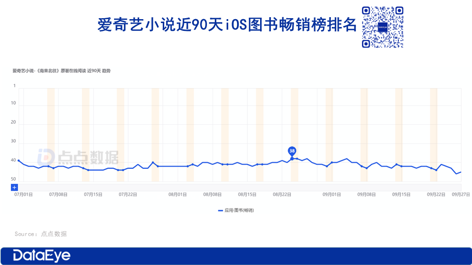 从市场排名来看,点点数据显示,9月27日爱奇艺小说位列iOS图书畅销榜第45名、图书免费榜79名。而番茄小说和七猫小说分别位列iOS图书畅销榜第4和第9名。