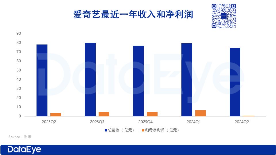最新财报显示,爱奇艺在2024年Q2的总营收为74亿元,同比下降5%,净利润仅6870万元,较去年同期的3.652亿元下降了81%。