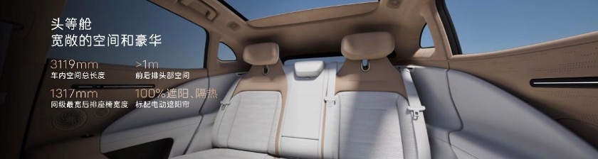 进入车内,阿维塔07营造了都市豪华头等舱的奢华氛围。业内独家35.4英寸4K全景远端屏、15.6英寸华为2K智慧中控屏和双6.7英寸高清后视屏,形成4屏环拥设计,带来科技豪华新体验。星河紫与云山棕两种主题色,均采用双拼色设计,呈现出典雅的豪华质感。车内软包面积达到10平米,顶棚采用超纤绒类麂皮,柔软舒适、健康环保。