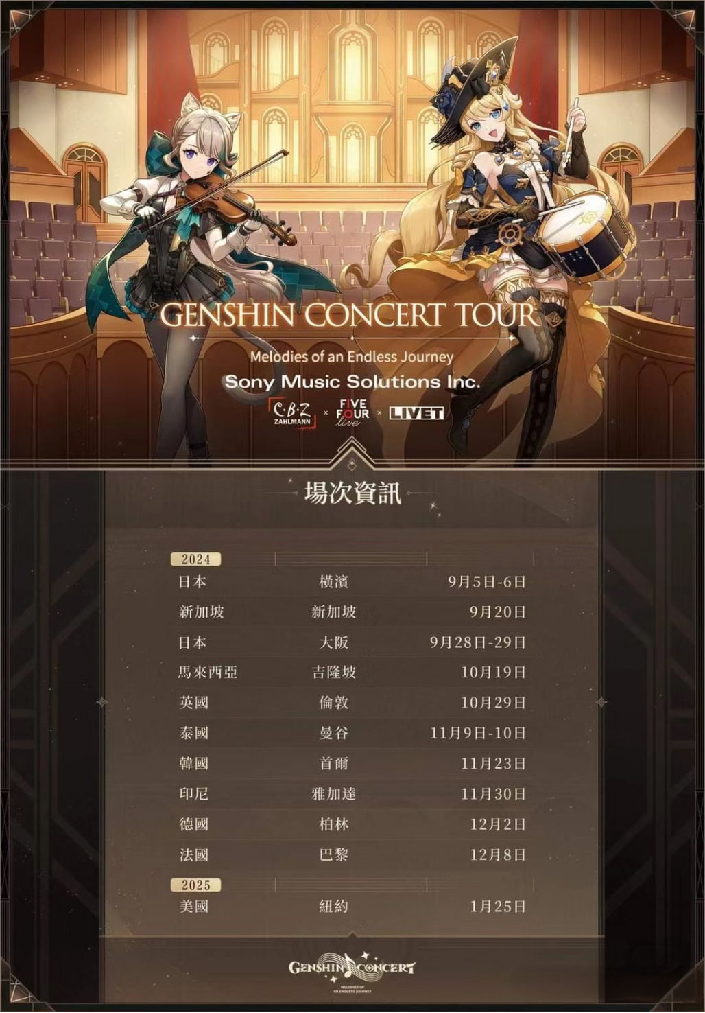 还有《原神》于2023年下半年开启的“原神交响音乐会”,该音乐会的全球巡演首站上海站的2场演出于9月10日晚间开启预售,3分钟内所有档位门票迅速售罄;将于10月在北京、天津等5个城市剧院内上演的10场交响音乐会也显示没有余票;与此同时,二级票务市场中,原神音乐会炒出了接近票价两倍的“天价”。2024年,原神的全球巡演在海外“遍地开花”,反响同样热烈,场次已然排到了明年1月的美国纽约场。
