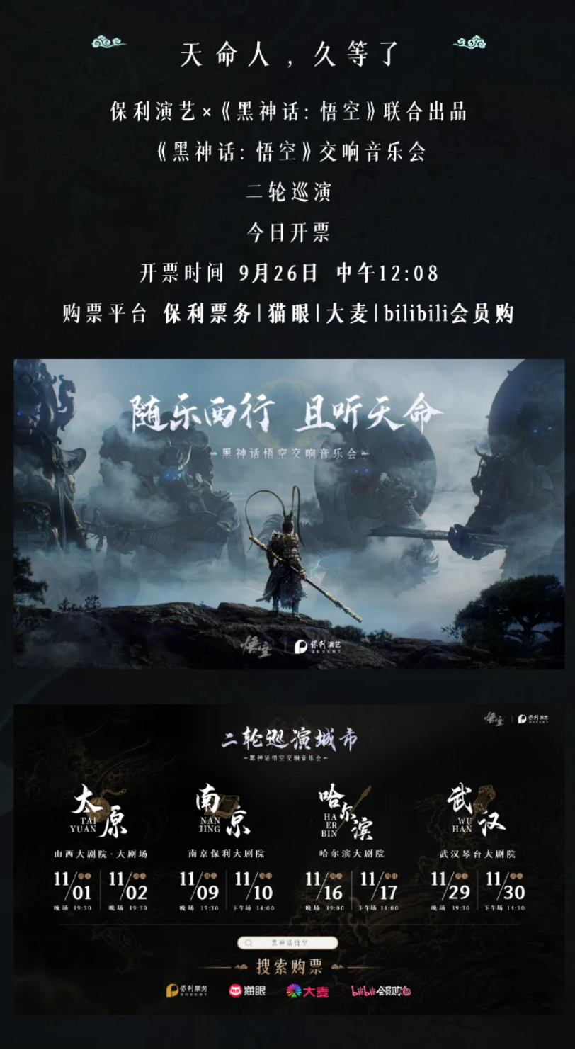 《黑神话:悟空》交响音乐会二巡场次资讯