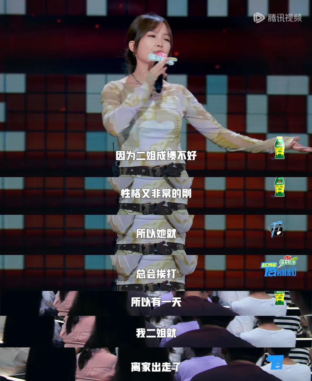 第六期里Echo的表演无疑是当期被讨论最多、热度最高的,但从现场反应来看,观众并不知道以什么样的情绪来应对这种“地狱笑话”。虽然Echo还是被淘汰了,但从她最开始讲家里有四个小孩,只有一个是男孩,“可见我们家很喜欢女孩”,到出走的二姐,Echo已经留下了一个完整的表演,一个如她所说的中国家庭的故事。